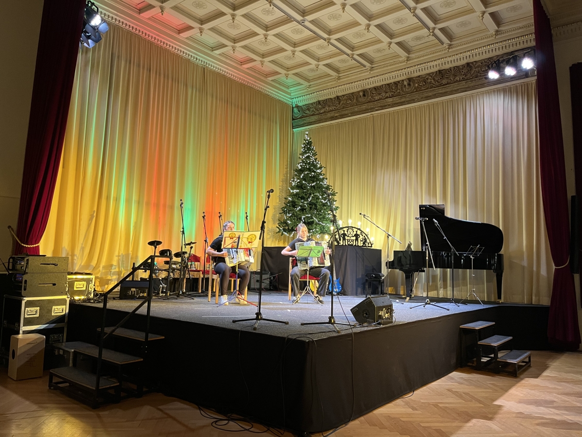 Am vergangenen Freitag, den 06.12.2024, verwandelte sich das Kulturhaus Erzhammer in ein weihnachtliches Schaubild, als etwa 80 unserer talentierten Schüler und Schülerinnen eine bezaubernde Weihnachtsoiree präsentierten. Wochenlang hatten sie geprobt, geplant und gestaltet – das Ergebnis war ein vielfältiges Programm, das die Zuschauer in weihnachtliche Stimmung versetzte.