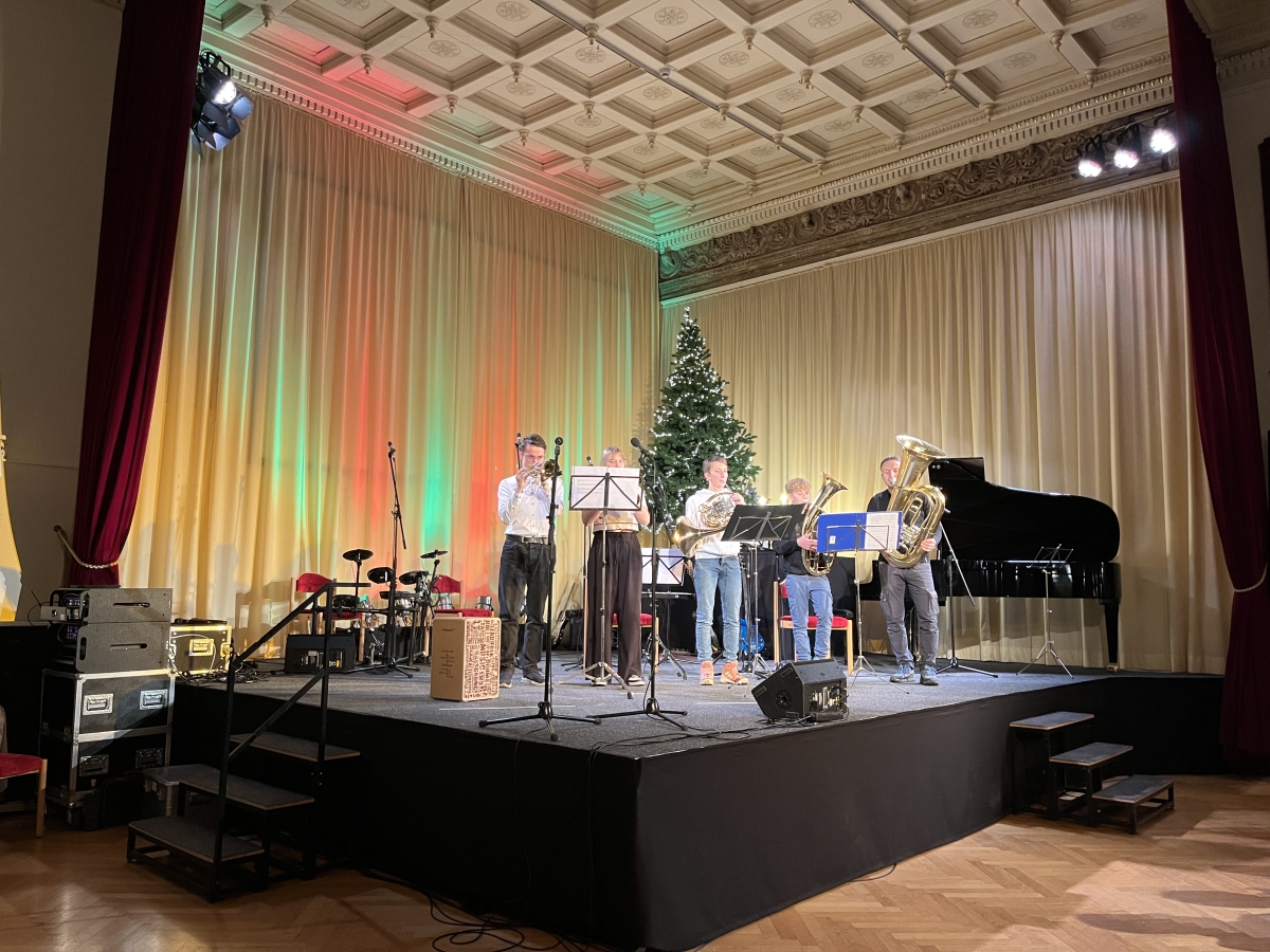 Die Soiree endete mit einem gemeinsamen Finale, unseres Schulchores und der Blechbläsergruppe, die das Publikum mit dem festlichen Lied "Fröhliche Weihnacht" begeisterten.