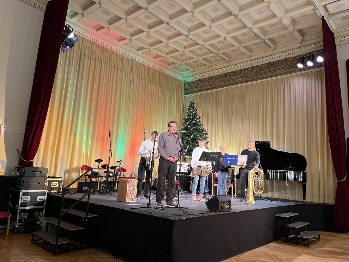 Die Soiree endete mit einem gemeinsamen Finale, unseres Schulchores und der Blechbläsergruppe, die das Publikum mit dem festlichen Lied "Fröhliche Weihnacht" begeisterten.